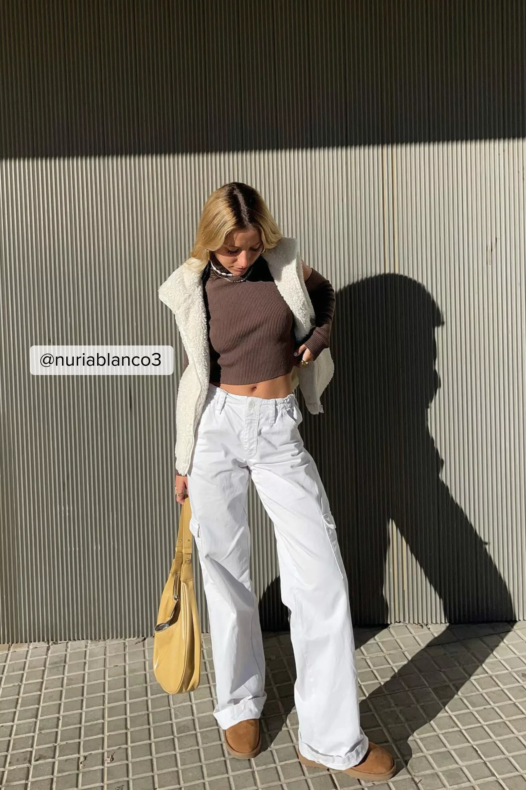 This vest is teddy and features a zipper closure, pockets, a lining and a drawstring on the bottom side.
