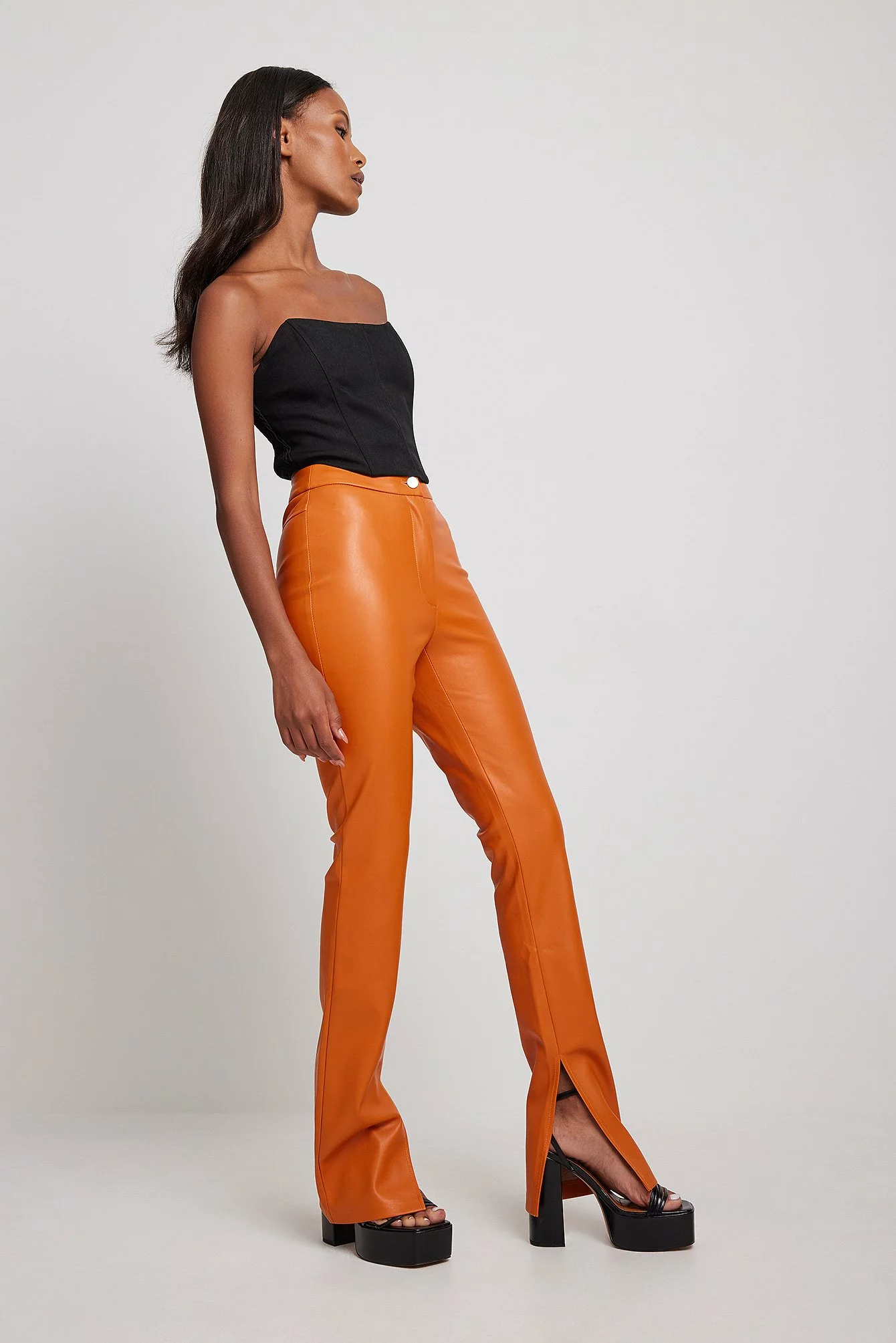 These leggings feature side slits, a button closure and a mid-waist design. Inseam length: 83 cm / 32.68.