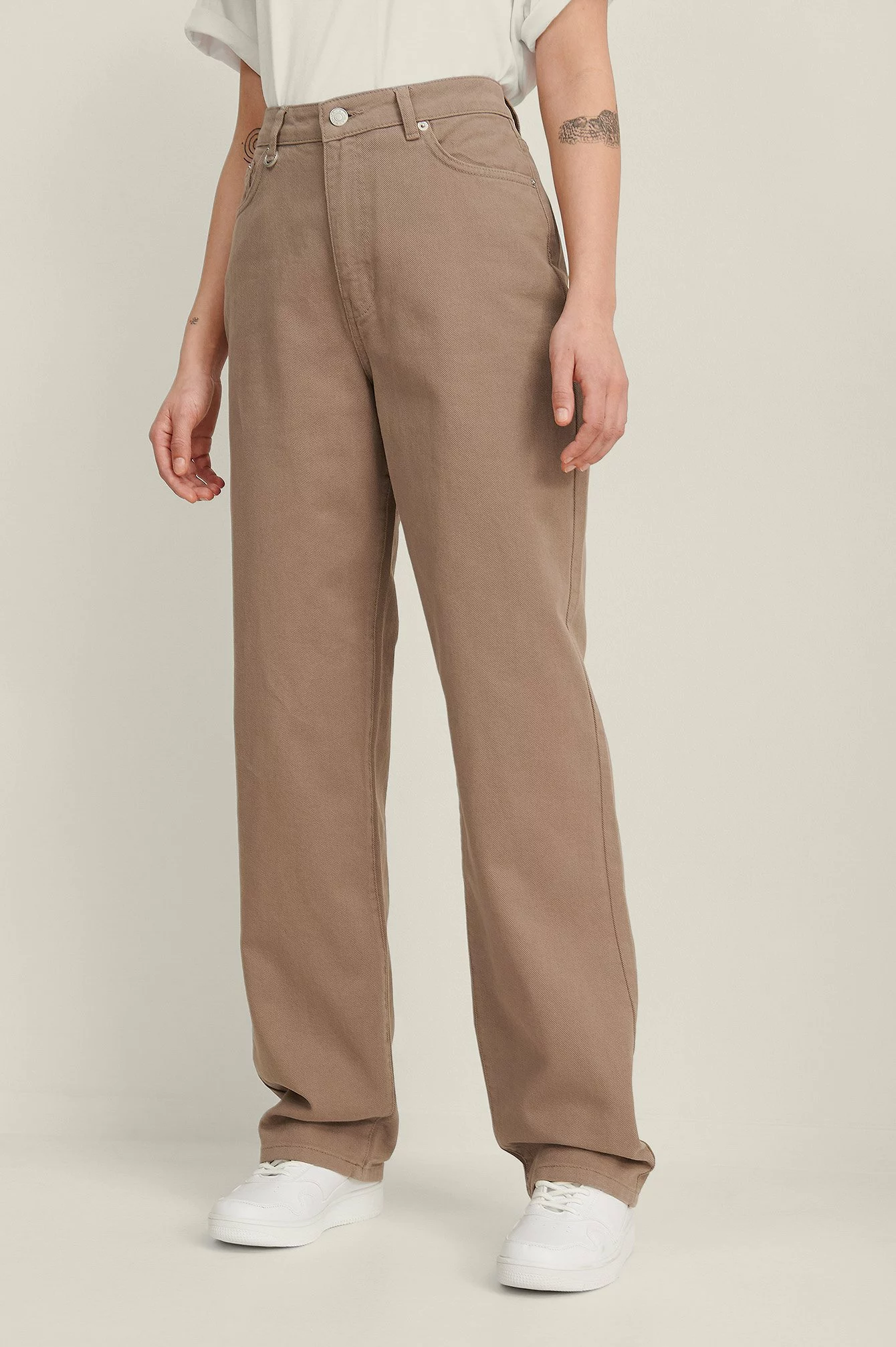 These jeans feature a high waist fit, belt loops, a zipper and button closure, a five-pocket design and a straight fit. Inseam length in size 36: 84.5 cm / 33.3 in. Waist in size 36: 36 cm / 14.2 in. Seat in size 36: 48 cm / 18.9 in.