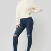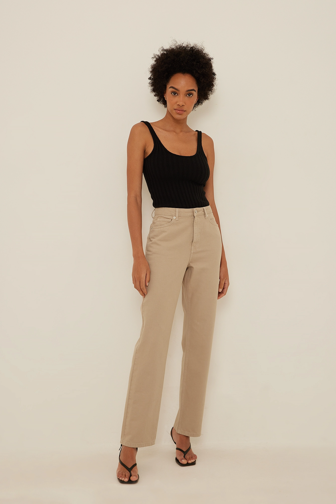 These 5-pocket jeans feature a high waist, a zip and button closure and a straight fit. Our tall jeans are designed with added centimeters to the length of the inseam, suitable for those of you with a height of 174 cm and over.