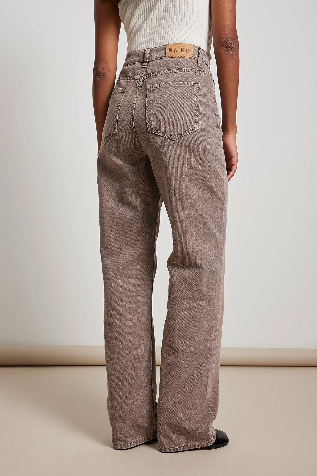 This product is big in size, we recommend you to choose a size smaller than your usual. These jeans feature a high waist fit. They have a five-pocket design and a belt loop. These jeans feature a wide leg and a zip and button closure.