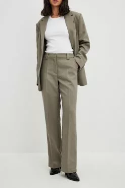 These suit pants feature a zipper, hook and button closure. They have wide belt loops and 2 side pockets. These suit pants feature 2 mock pockets on the back, a pleating on each leg and a slightly stretchy, structured material. Inseam length in size 36: 81 cm / 31.88 in.