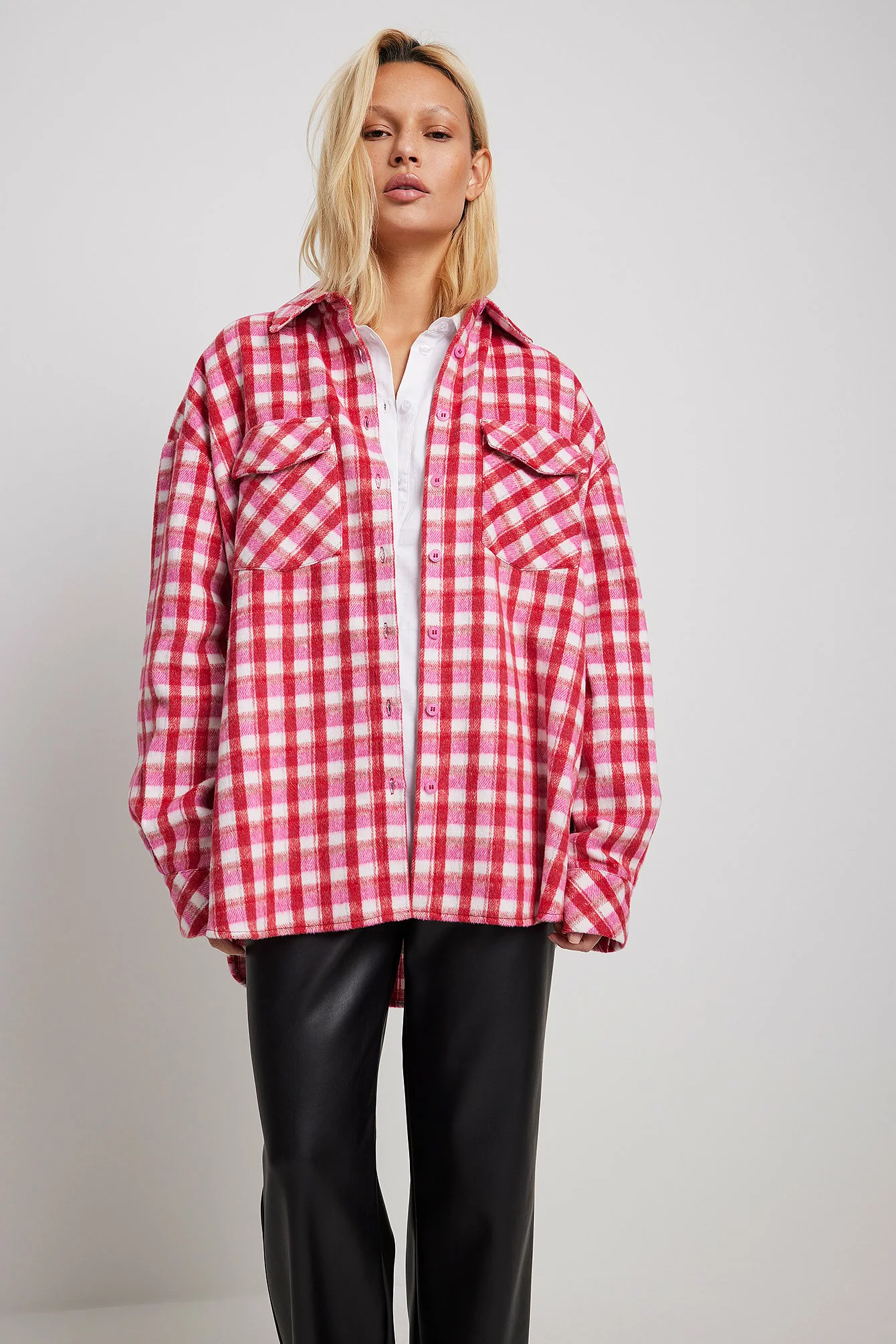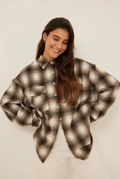 This overshirt features long sleeves, button closure, two front flap pockets and button detail on the sleeves.