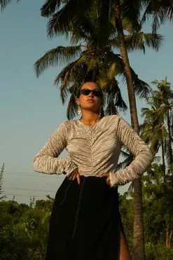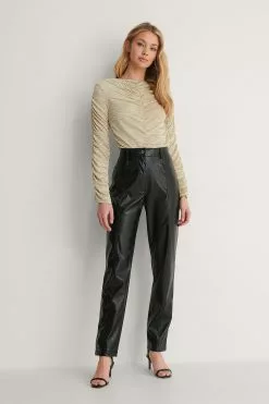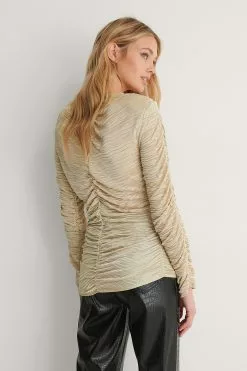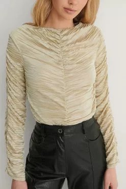 This blouse is perfect for a night out and features a round neck, a keyhole closure at the back of the neck, long sleeves, structured, gathered, pleated details all over, a slim fit and a slightly longer length.