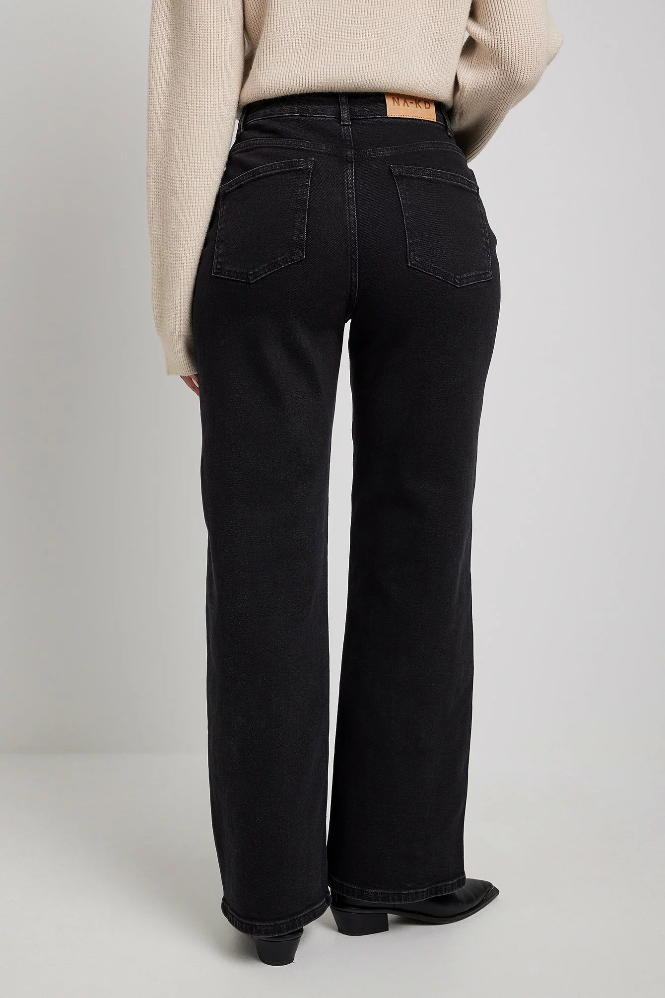 These jeans feature a high rise waist with a zip and button closure, a five-pocket design and a wide leg.