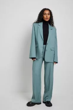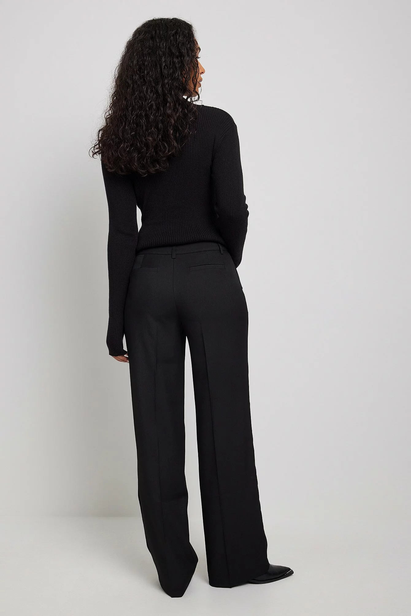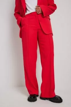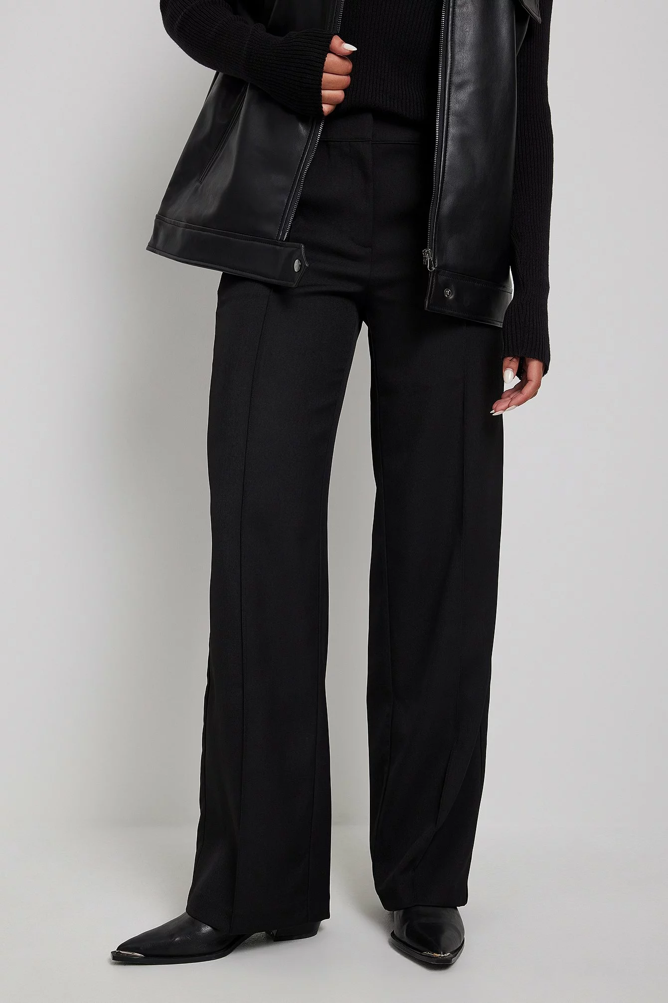 These trousers are tailored and feature side pockets, a seam detail at the front and a wide leg.