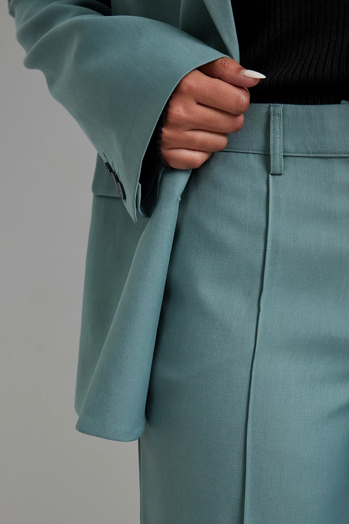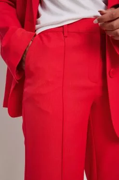 These trousers are tailored and feature side pockets, a seam detail at the front and a wide leg.