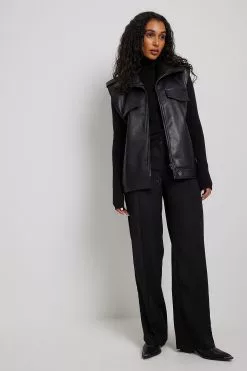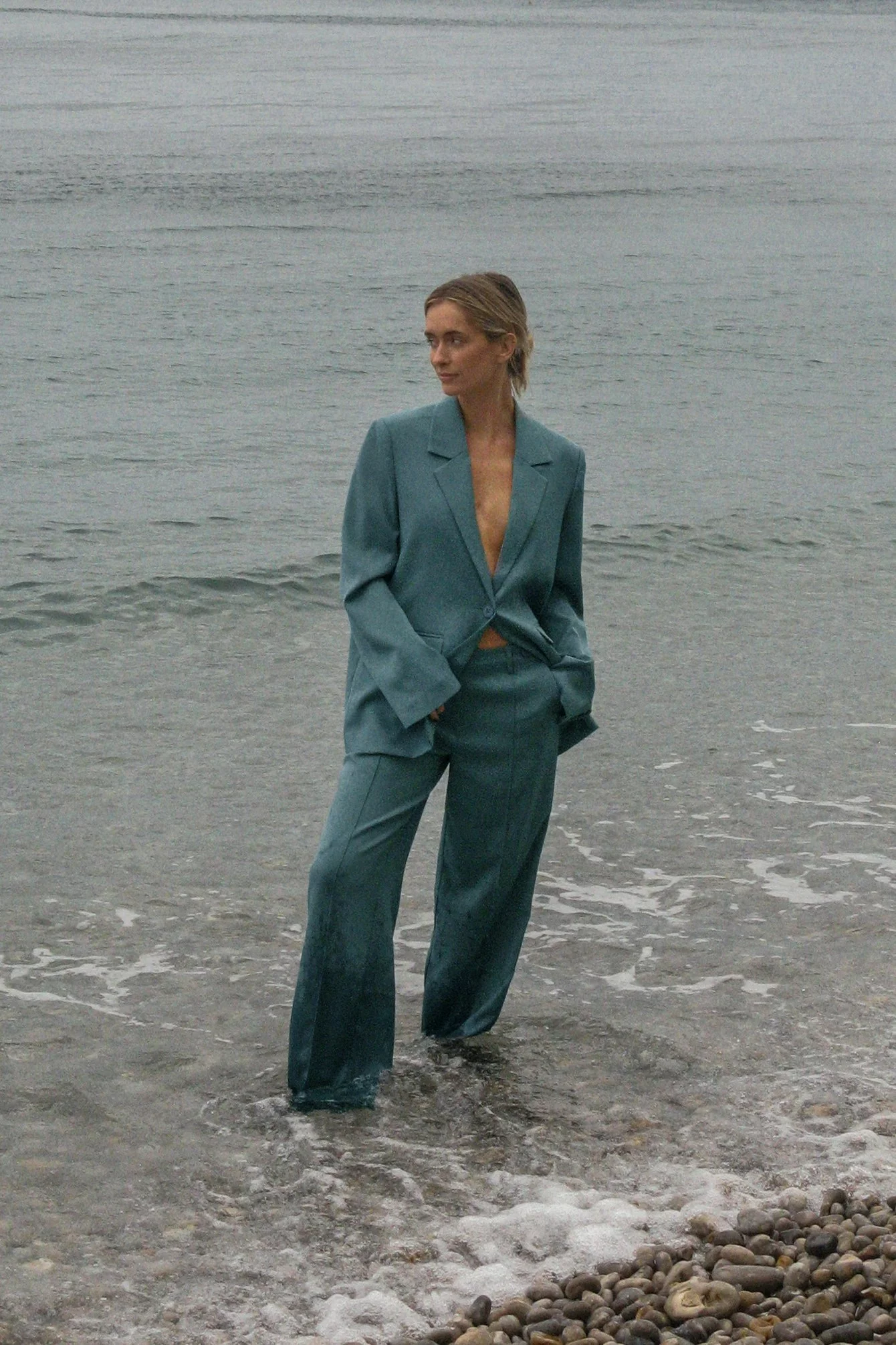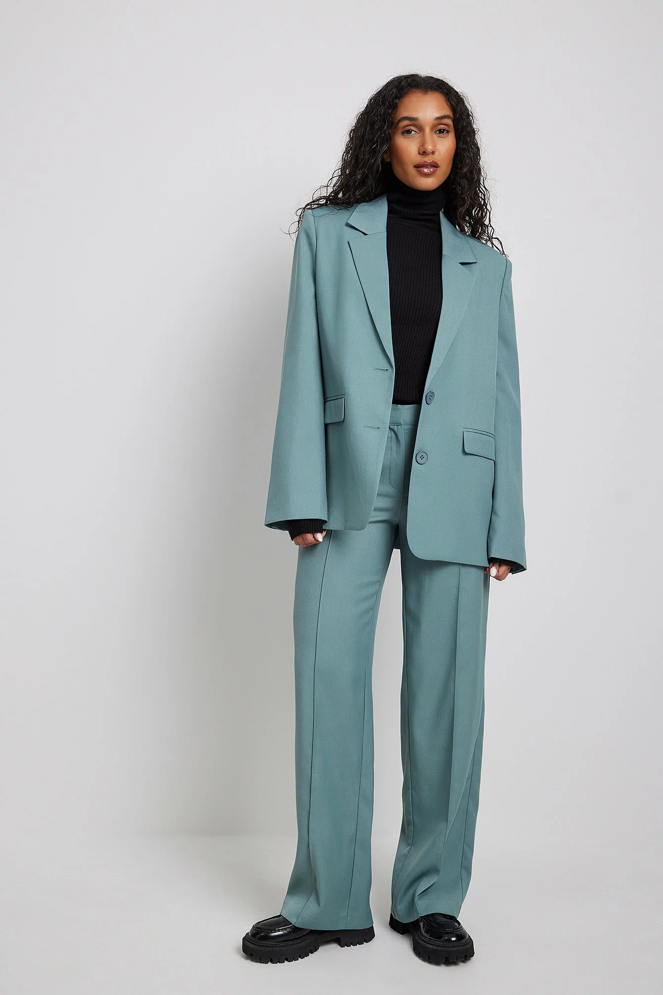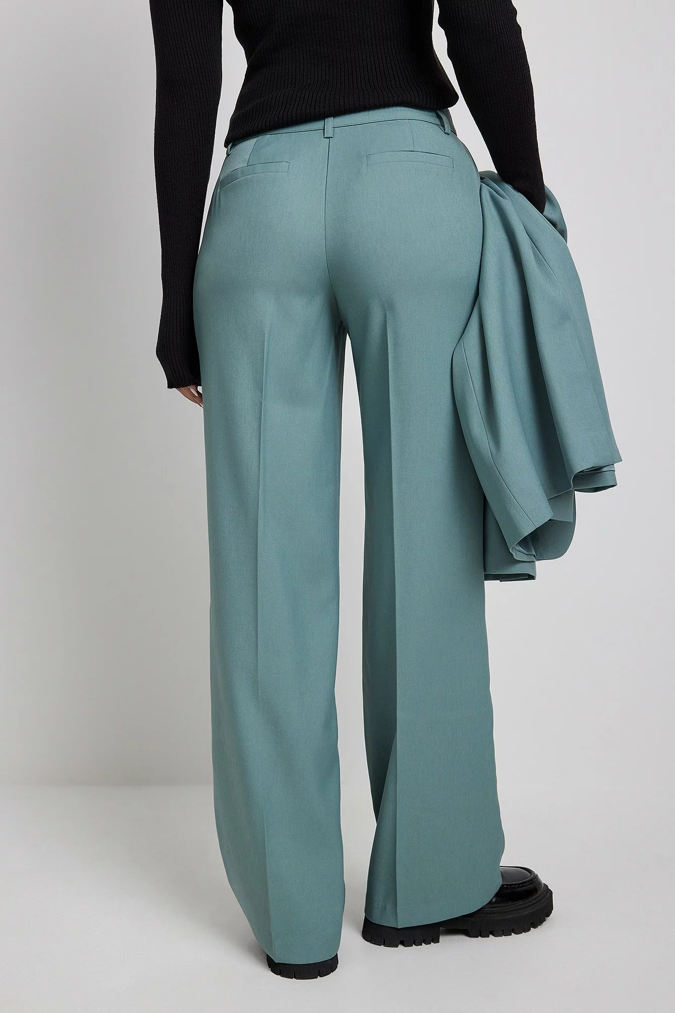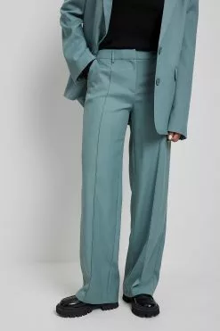 These trousers are tailored and feature side pockets, a seam detail at the front and a wide leg.