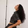 This shirt features a textured material. It has a loose fit and a lapel neckline. This shirt features a button closure, a chest pocket and long sleeves with a button closure at the cuffs.