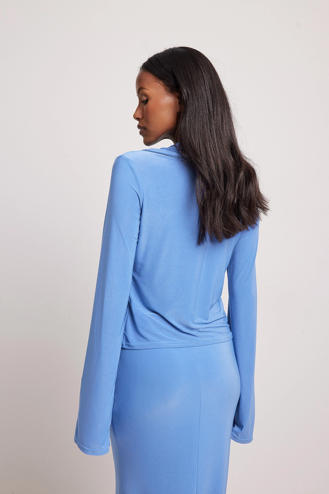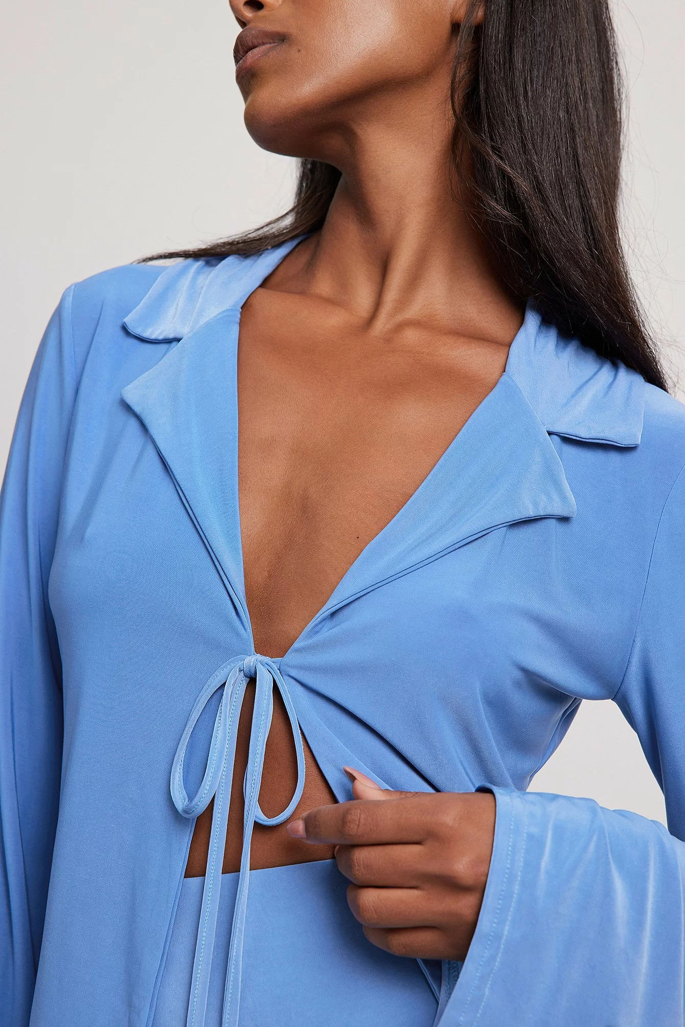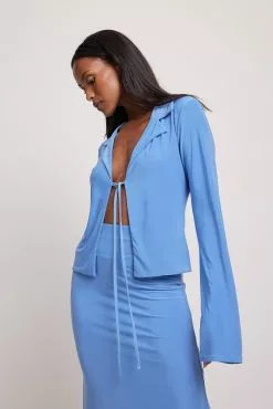 This shirt is made of jersey and features a tie-front, a lapel design and long sleeves.