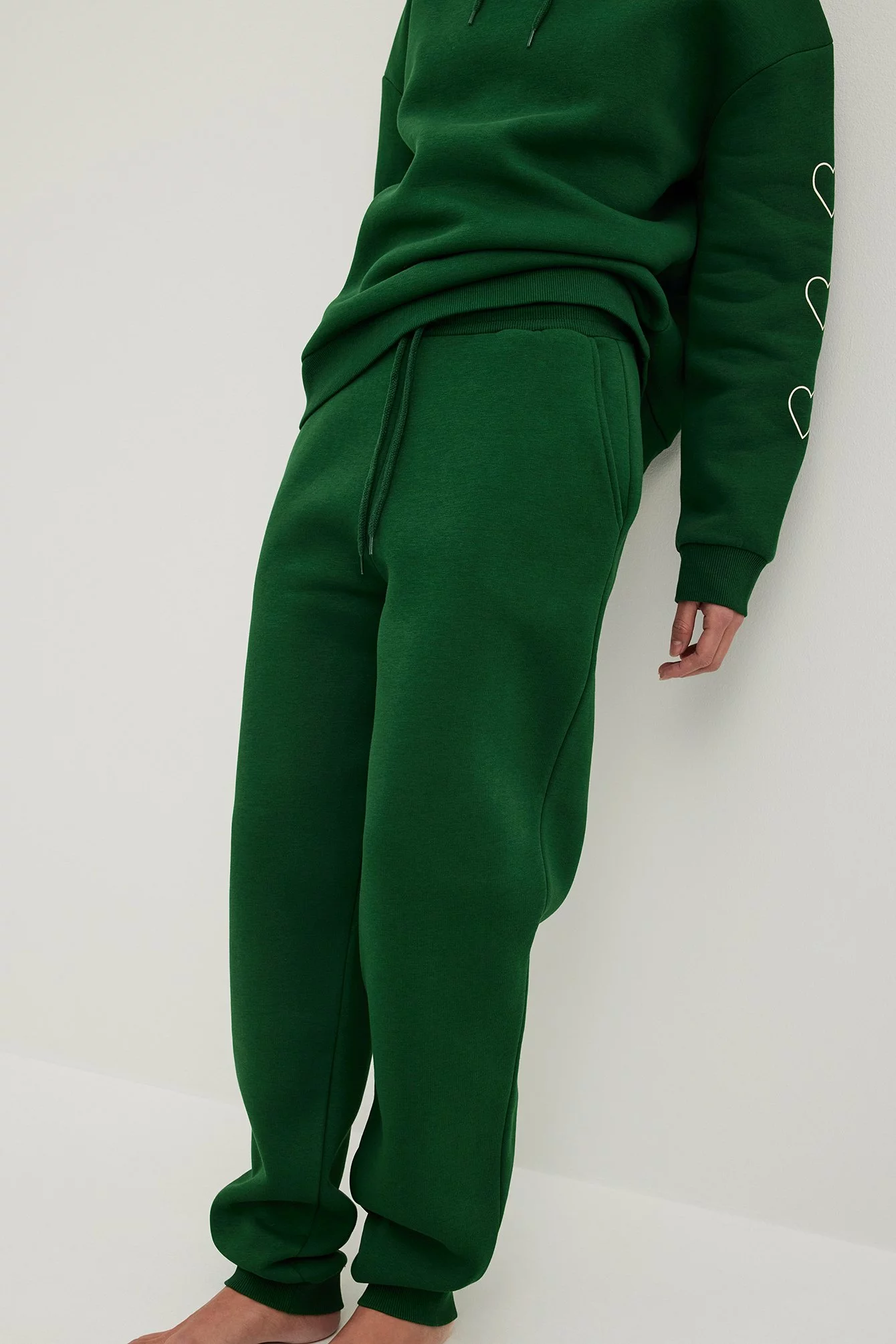 This sweatpant features a brushed inside with a soft touch. They have an elastic waistband with drawstrings and side slanting pockets. This sweatpant features ribbed trims.